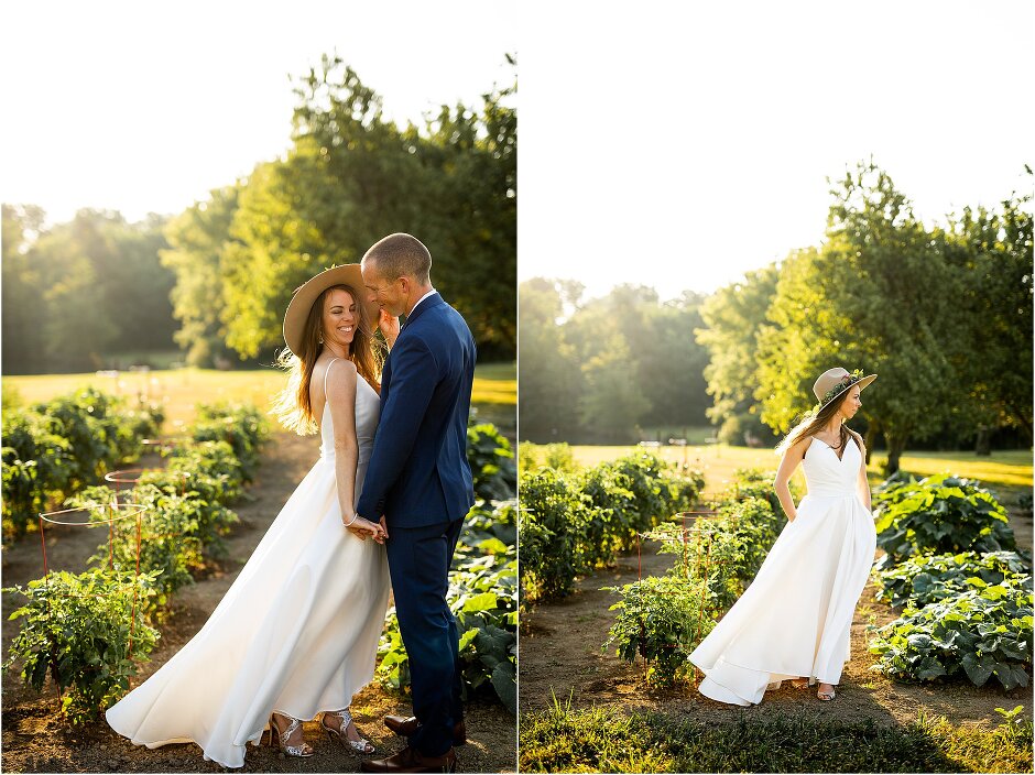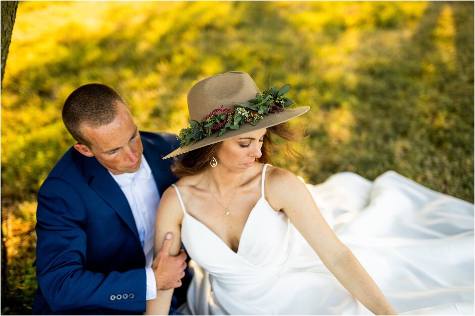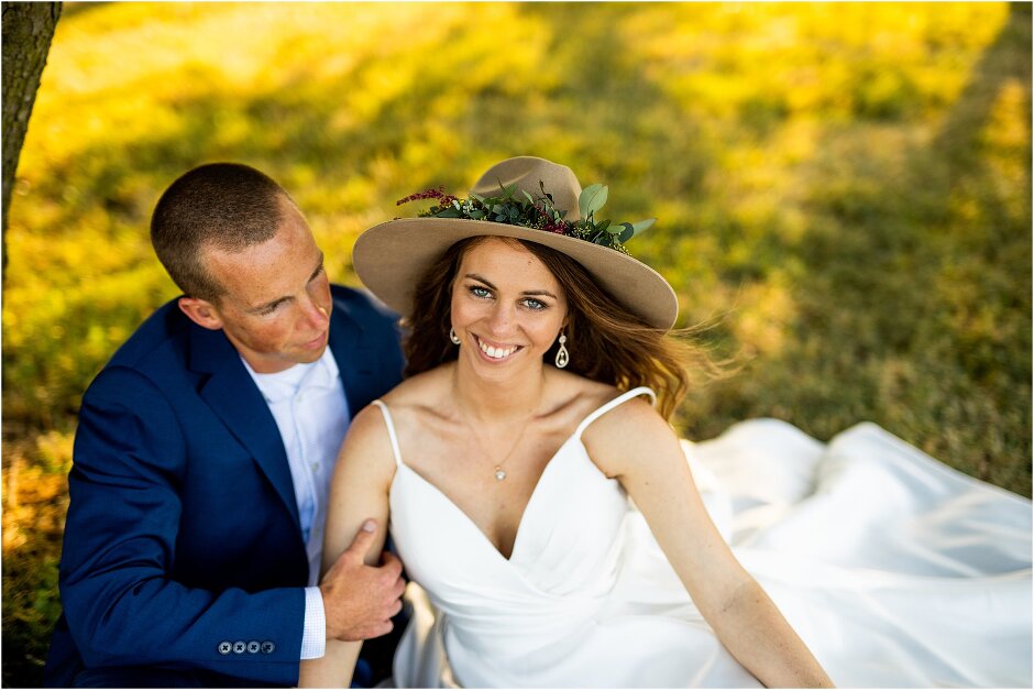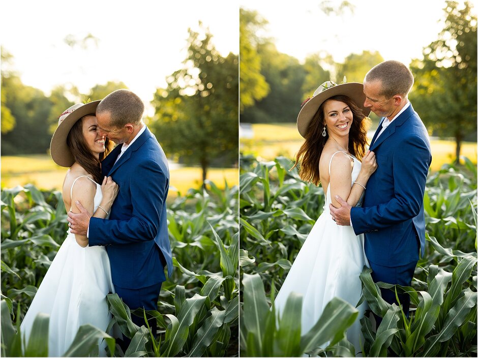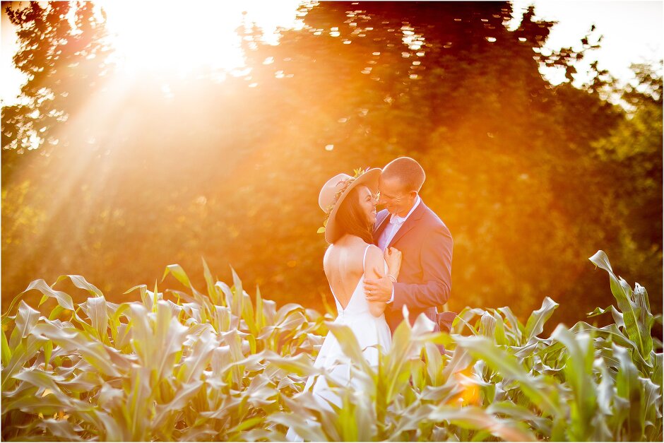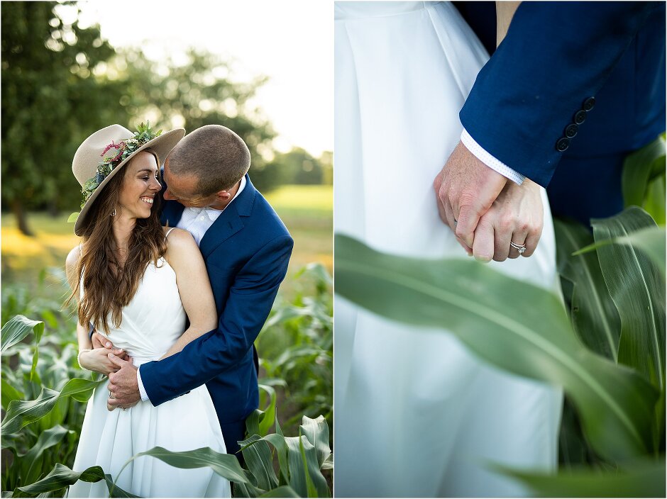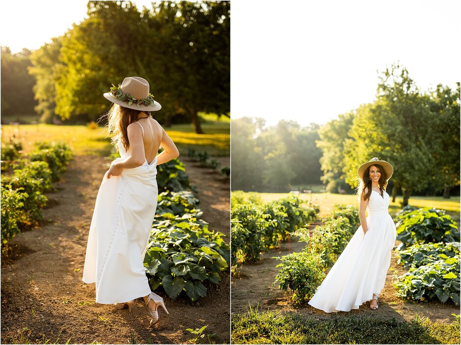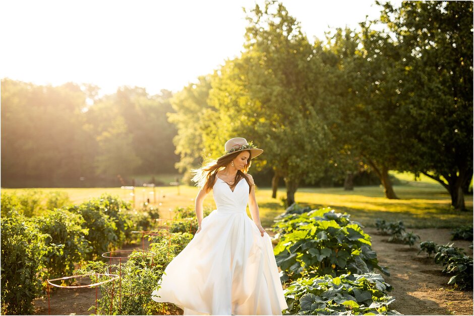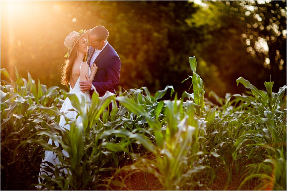 As mentioned above, Justin & I started our wedding off with a sunrise first look. My matron of honor, McKenzie was a complete gems as she got up to help me get ready at 4 AM! Did I mentioned she found out she was pregnant a couple months before our wedding? Just adding to the story line 😉 A huge shoutout to our vendors, Hannah, Jer, and Ashley for even being willing to capture all of this at such an hour. We went to our videographer’s house that was nearby for the first look. She had a garden, which is like a sanctuary for me & you will see so many of those photos ! Justin, being a farmer, I love that we could get photos in the corn. God is in every detail. He gave us a gorgeous golden hour. During our first look, I washed Justin’s feet as a symbol of humility, mirroring Jesus when he washed the disciples feet. We spent so much time together on our wedding day & it was so special. It was not rushed & it was the best part of the day. AND I got to wear a hat for my first look. I was that bride who had 2 looks & 2 pairs of shoes for her wedding day !