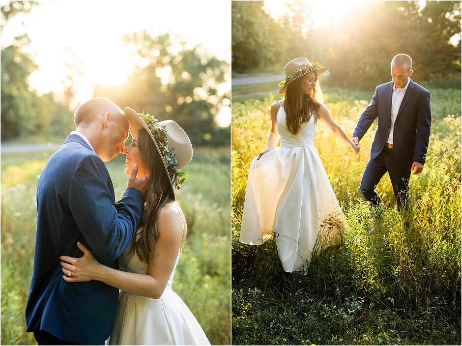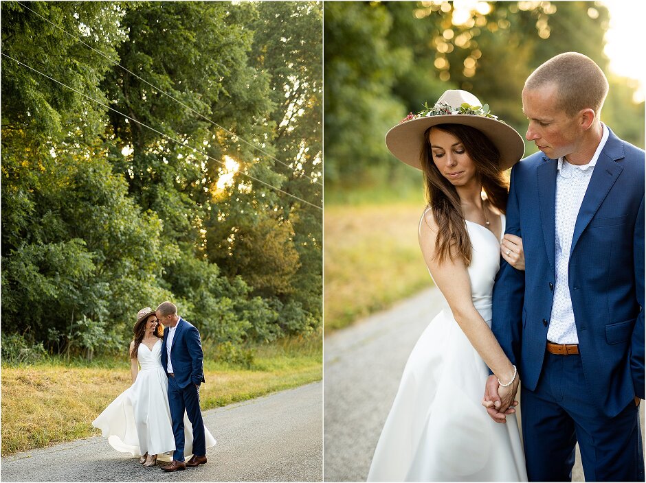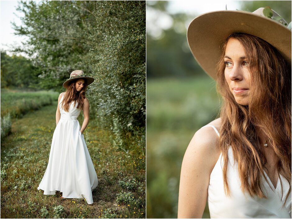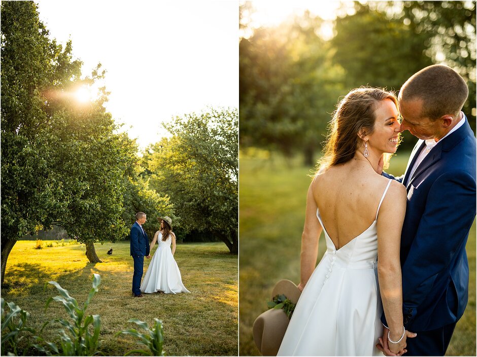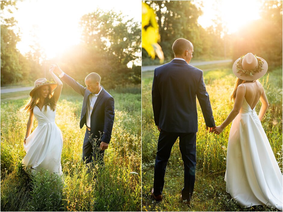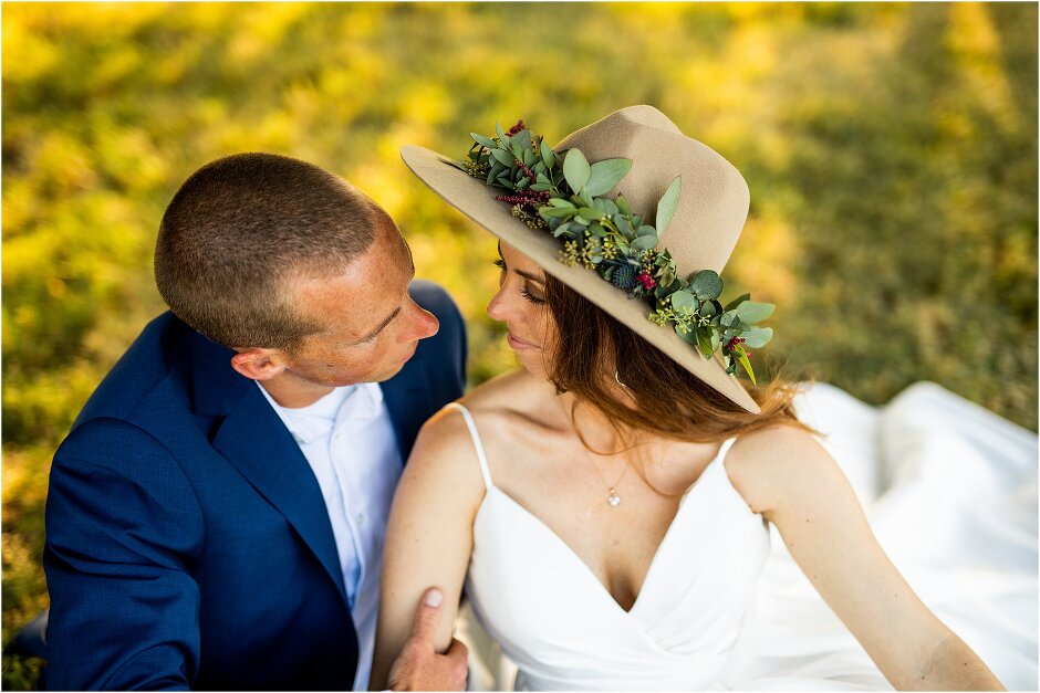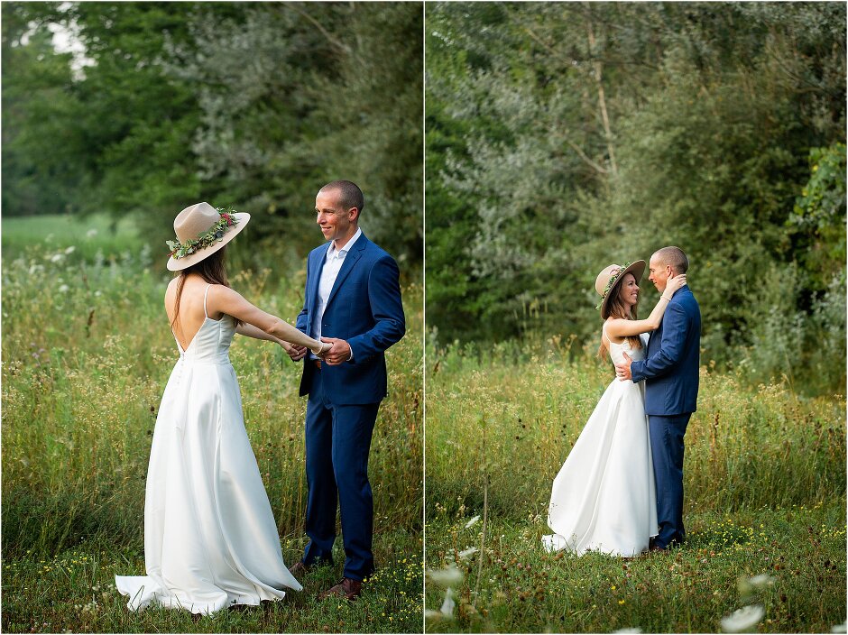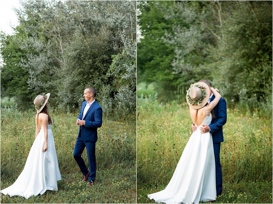As mentioned above, Justin & I started our wedding off with a sunrise first look. My matron of honor, McKenzie was a complete gems as she got up to help me get ready at 4 AM! Did I mentioned she found out she was pregnant a couple months before our wedding? Just adding to the story line 😉 A huge shoutout to our vendors, Hannah, Jer, and Ashley for even being willing to capture all of this at such an hour. We went to our videographer’s house that was nearby for the first look. She had a garden, which is like a sanctuary for me & you will see so many of those photos ! Justin, being a farmer, I love that we could get photos in the corn. God is in every detail. He gave us a gorgeous golden hour. During our first look, I washed Justin’s feet as a symbol of humility, mirroring Jesus when he washed the disciples feet. We spent so much time together on our wedding day & it was so special. It was not rushed & it was the best part of the day. AND I got to wear a hat for my first look. I was that bride who had 2 looks & 2 pairs of shoes for her wedding day !