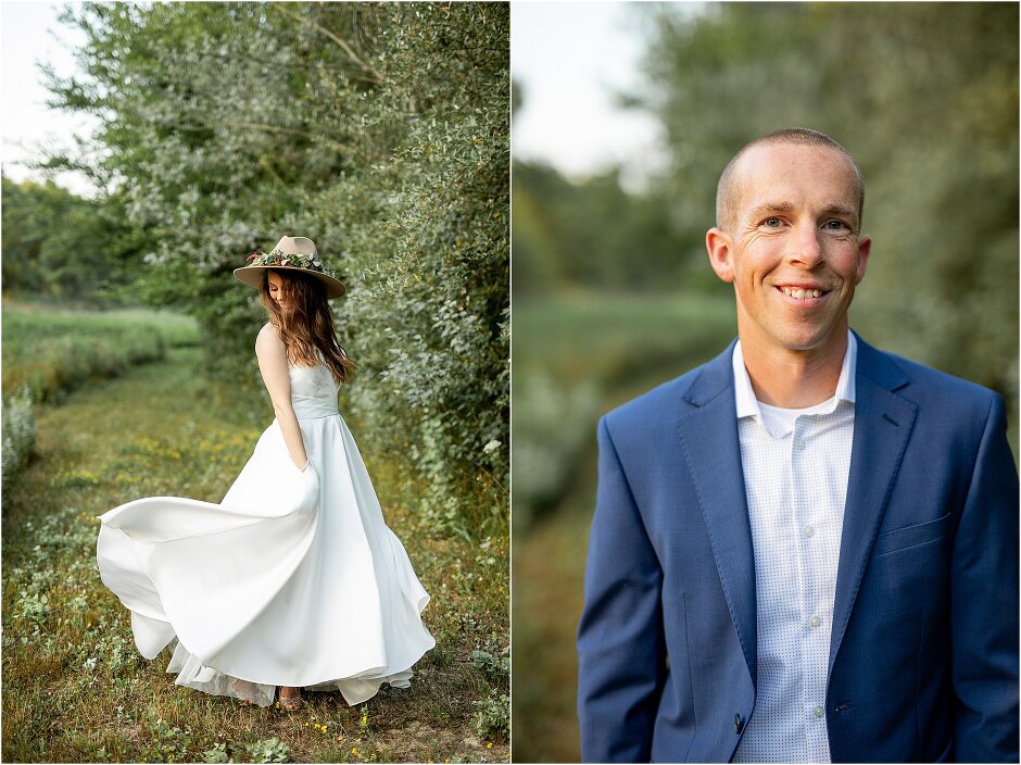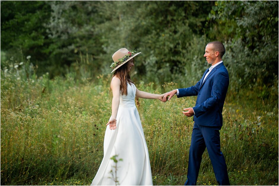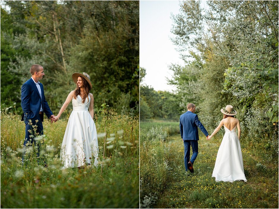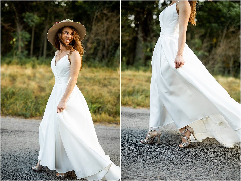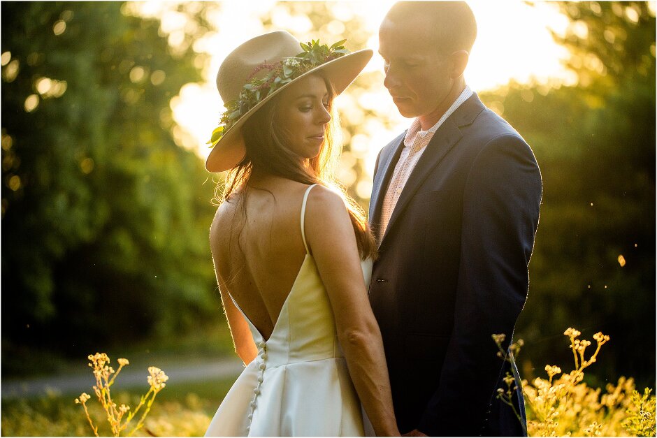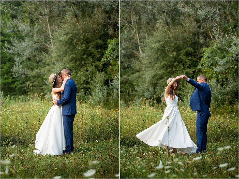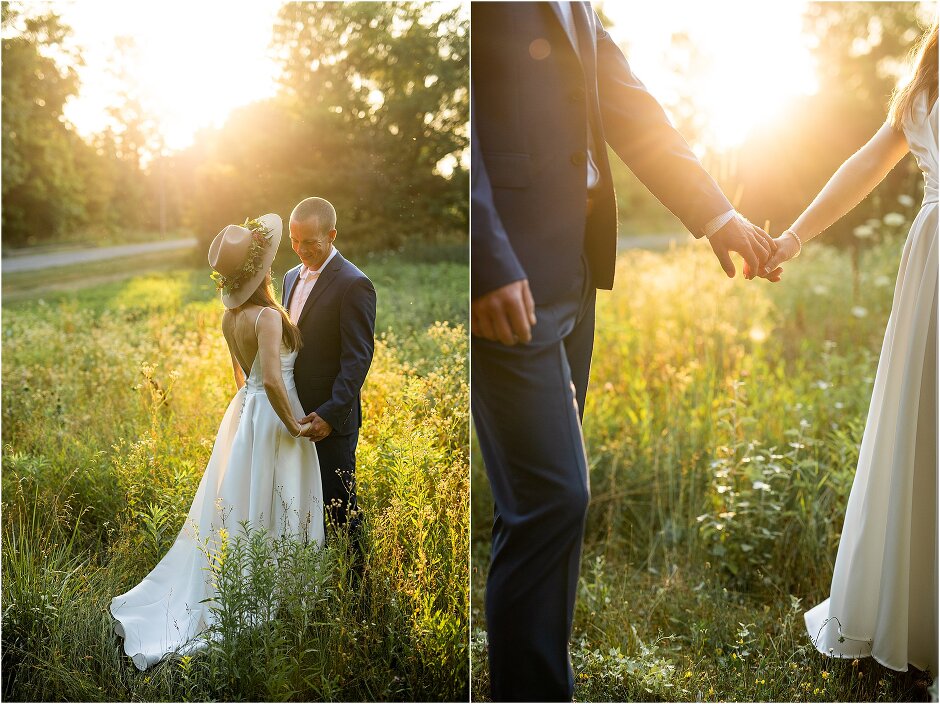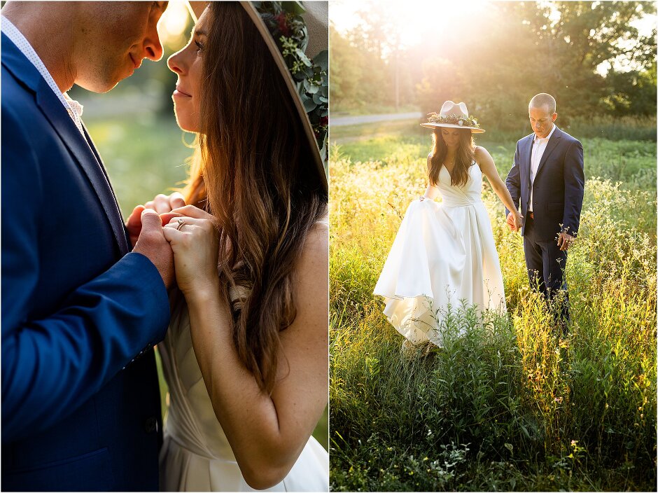 As mentioned above, Justin & I started our wedding off with a sunrise first look. My matron of honor, McKenzie was a complete gems as she got up to help me get ready at 4 AM! Did I mentioned she found out she was pregnant a couple months before our wedding? Just adding to the story line 😉 A huge shoutout to our vendors, Hannah, Jer, and Ashley for even being willing to capture all of this at such an hour. We went to our videographer’s house that was nearby for the first look. She had a garden, which is like a sanctuary for me & you will see so many of those photos ! Justin, being a farmer, I love that we could get photos in the corn. God is in every detail. He gave us a gorgeous golden hour. During our first look, I washed Justin’s feet as a symbol of humility, mirroring Jesus when he washed the disciples feet. We spent so much time together on our wedding day & it was so special. It was not rushed & it was the best part of the day. AND I got to wear a hat for my first look. I was that bride who had 2 looks & 2 pairs of shoes for her wedding day !