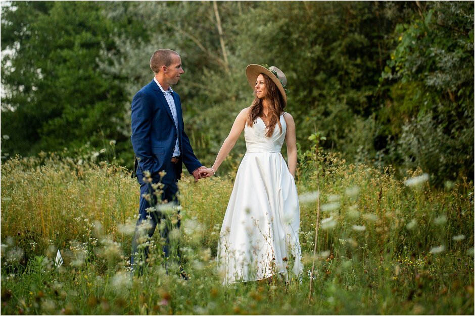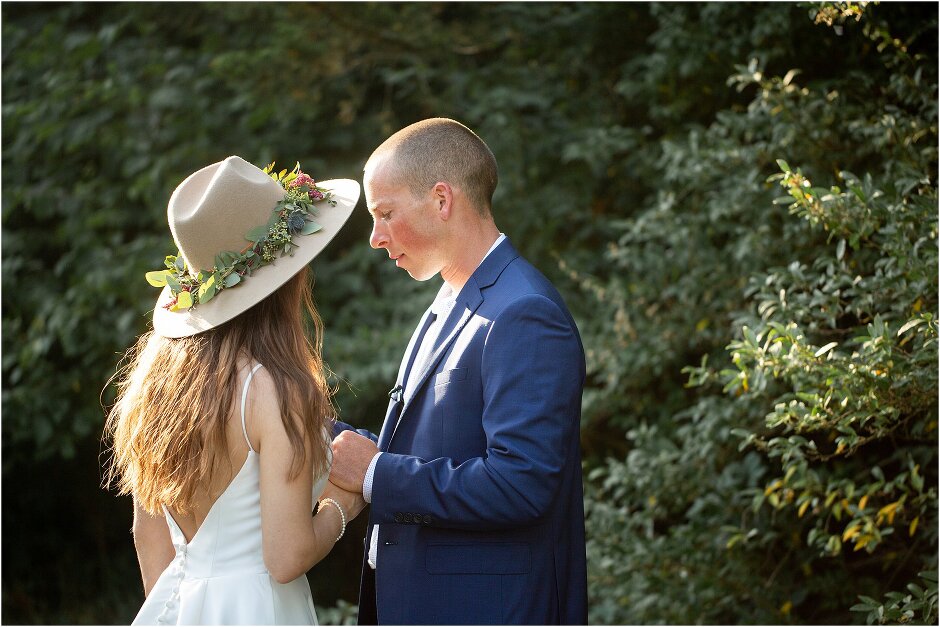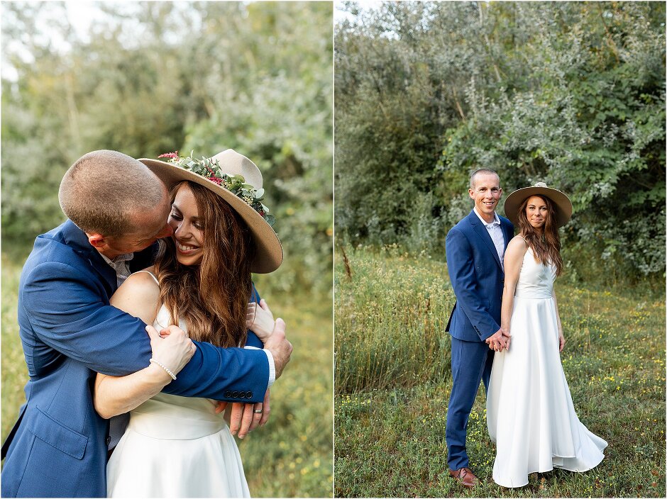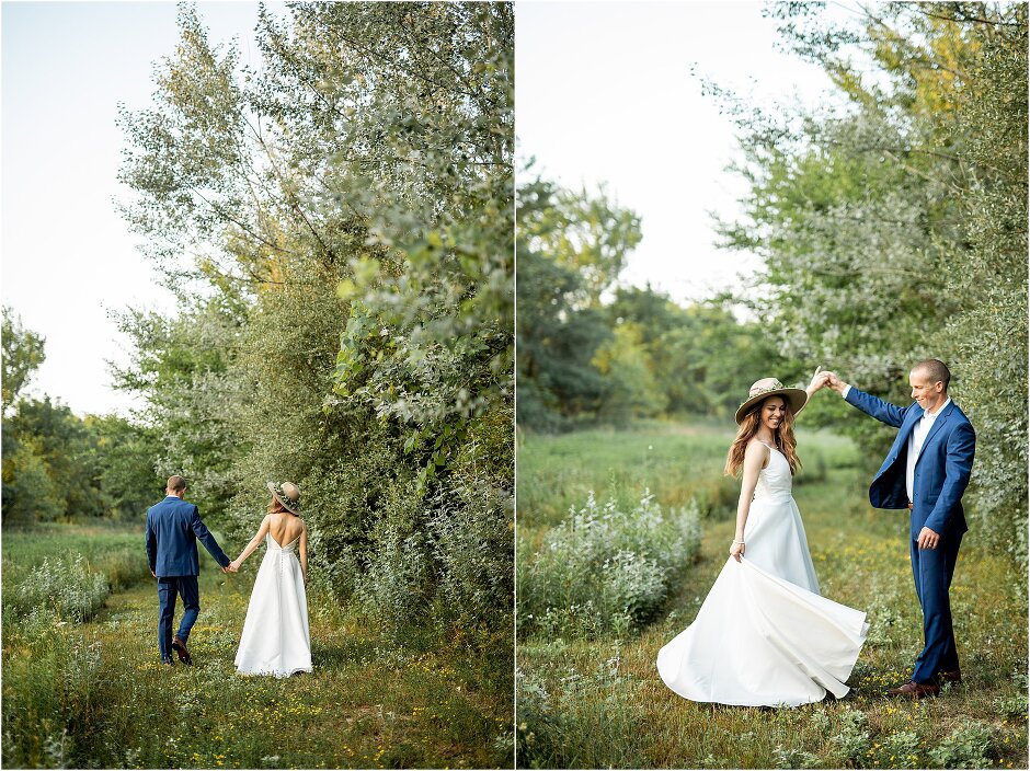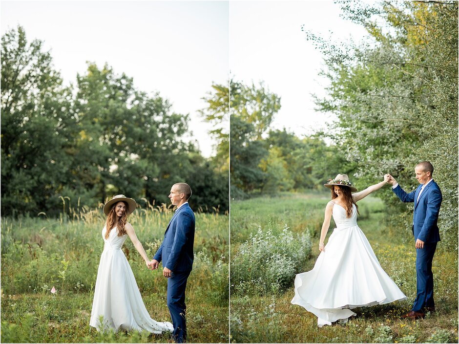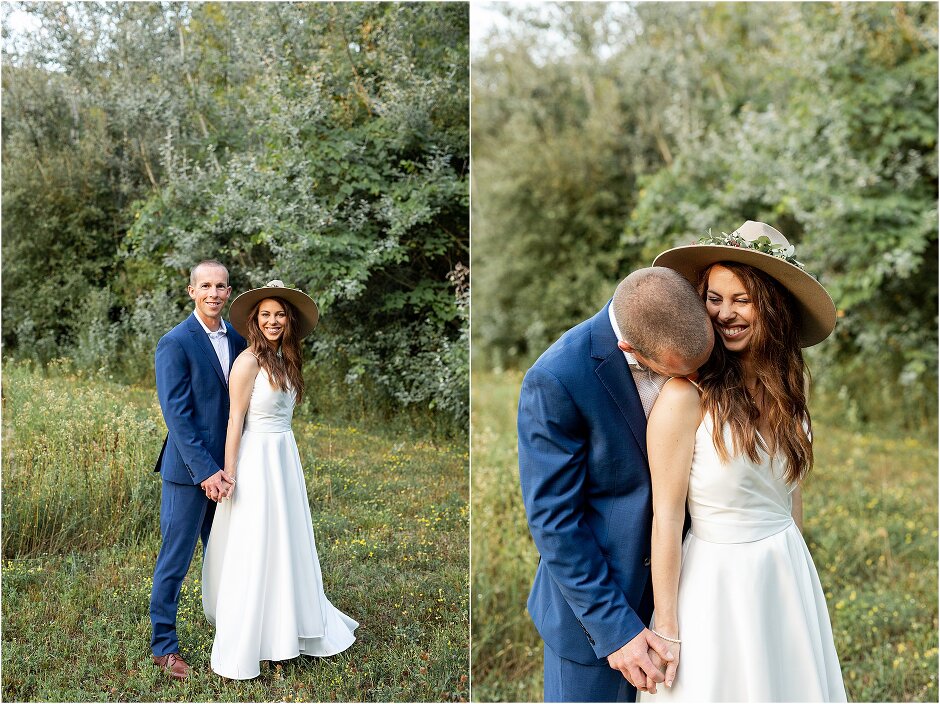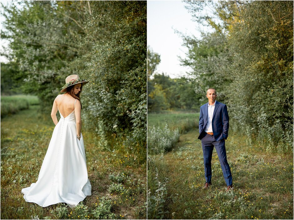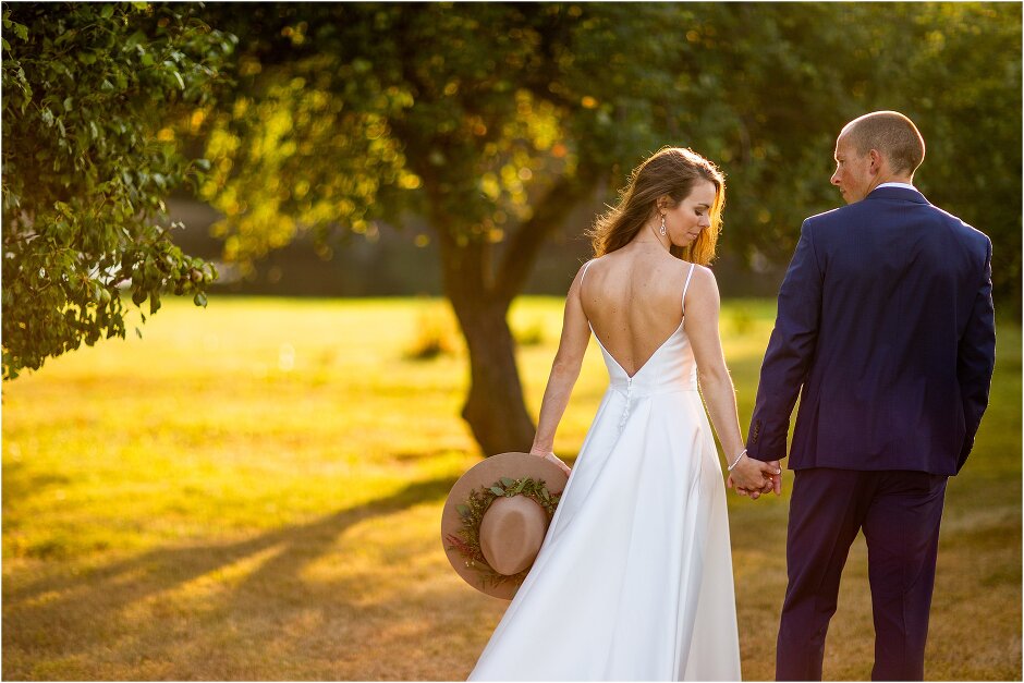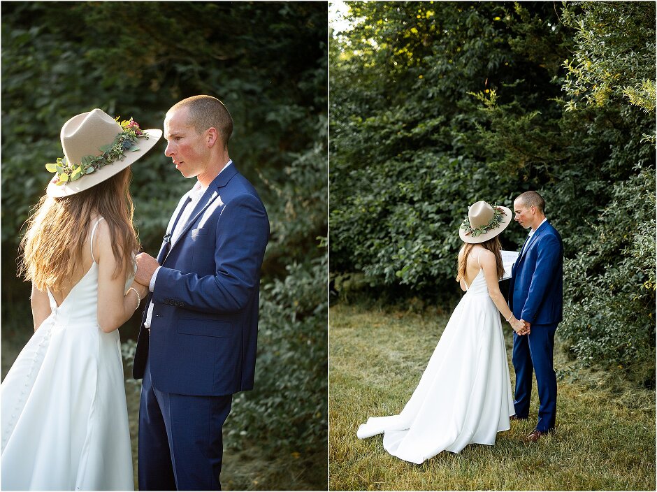 As mentioned above, Justin & I started our wedding off with a sunrise first look. My matron of honor, McKenzie was a complete gems as she got up to help me get ready at 4 AM! Did I mentioned she found out she was pregnant a couple months before our wedding? Just adding to the story line 😉 A huge shoutout to our vendors, Hannah, Jer, and Ashley for even being willing to capture all of this at such an hour. We went to our videographer’s house that was nearby for the first look. She had a garden, which is like a sanctuary for me & you will see so many of those photos ! Justin, being a farmer, I love that we could get photos in the corn. God is in every detail. He gave us a gorgeous golden hour. During our first look, I washed Justin’s feet as a symbol of humility, mirroring Jesus when he washed the disciples feet. We spent so much time together on our wedding day & it was so special. It was not rushed & it was the best part of the day. AND I got to wear a hat for my first look. I was that bride who had 2 looks & 2 pairs of shoes for her wedding day !