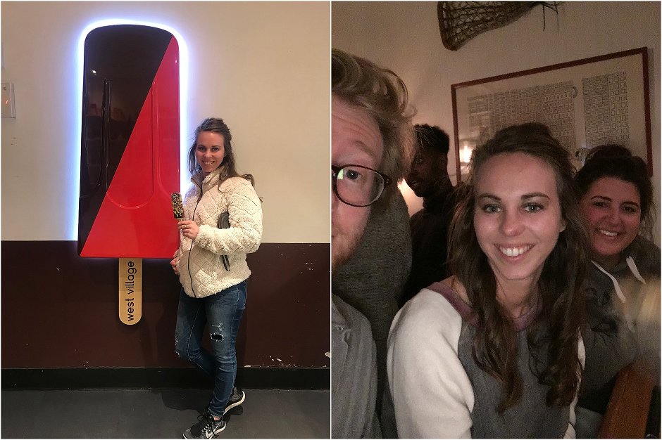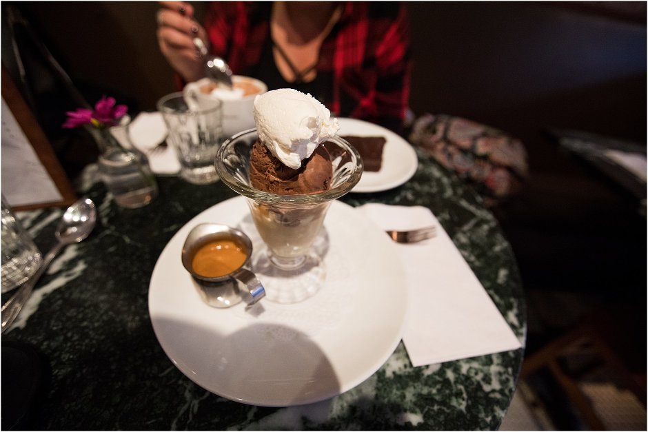 First, We arrived on a Wednesday afternoon, got a cab from the airport & headed to our Airbnb. Even though we were exhausted, we didn’t want to waste the day & needed some food. My cousin suggested we go to 5ive Tacos for a late lunch & that’s exactly what we did. Mind you, this is the cousin I stayed in Switzerland with & literally planned our entire stay of where to go and what to eat, and NOTHING disappointed us so I fully trusted whatever he suggested. We ordered Pho, vegetable dumplings & brussell sprouts. All was AMAZING!!! After we ate, we just strolled for miles in Brooklyn, taking it all in. We stopped in a few stores before & ended up going back out around 8:00 pm for dessert at the Chocolate Room. It perfectly hit the spot. Emily got hot chocolate with homemade marshmallows & chocolate cake, while I got the one and only Affogato. If you have no idea what that is & love espresso, you get ice cream with a shot poured over. It’s my all time favorite dessert !! We walked back ‘home’ for the night & met my cousin, Anita & her friend from Hungary at our place. Dorina was the maid of honor in the wedding & hung out with us all week/weekend.